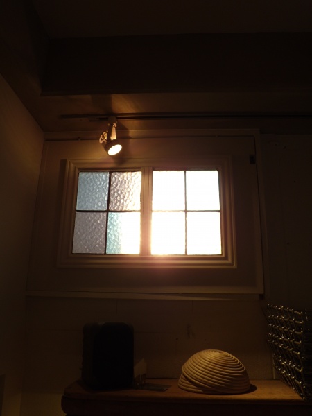 所で、写真はお店のステンドグラスですが、この時期になるとちょうど西日が差しこむんです。
