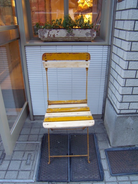 少し前からお店の外に一目惚れで買ったイスを置いています。(フランスからやって来ました)