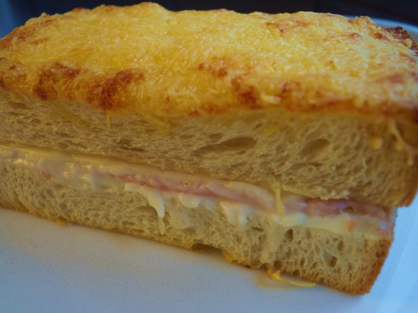 BLOG 新商品のお知らせ – クロックムッシュ – 2012.02.02 パンのこと 今まではたま~に作っていたのですが、 これからは定番商品として仲間入りです。 パン・ド・ミにホワイトソースと低添加ハムをサンドし、 チーズをたっぷりのせて焼きました。 ランチにもぴったりです。 250円 ☆是非ご賞味ください☆ 焼きあがり 11:00 < 前の記事 |BLOG TOP| 次の記事 >
