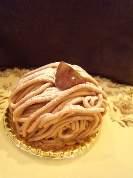 メレンゲとスポンジ2層の土台に和栗入り生クリームを絞り、フランス産マロンペーストで仕上げました。