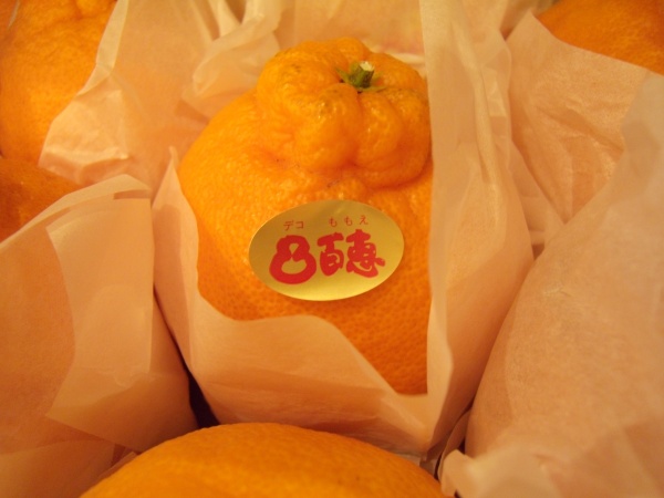 佐賀県にある「(株)吉森」さんの登録商標である凸百恵(でこももえ)という品種のデコポンです。これは普通のデコポンではなく、ものすごーっくおいしいデコポンです。
